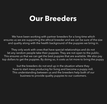 At Rolly Pups Officials, our goal is to match healthy, happy puppies to responsible, committed families. Each breed we have is unique, and each individual puppy is unique, and each person or family that is looking for a new furry friend is unique as well, therefore our policy is for you as that unique person looking to find a puppy that fits your personality and/or lifestyle, to plan a visit today and come to our home and discover the perfect furry friend meant just for you. Each breed has specific needs from birth to adoption.